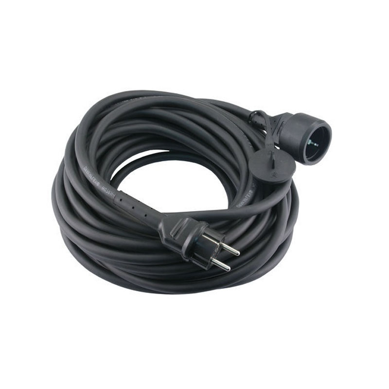 Verlengkabel van kwalitatieve rubberen kabel met bescherming tegen opspattend water. Typische toepassing voor krachtige apparaten.