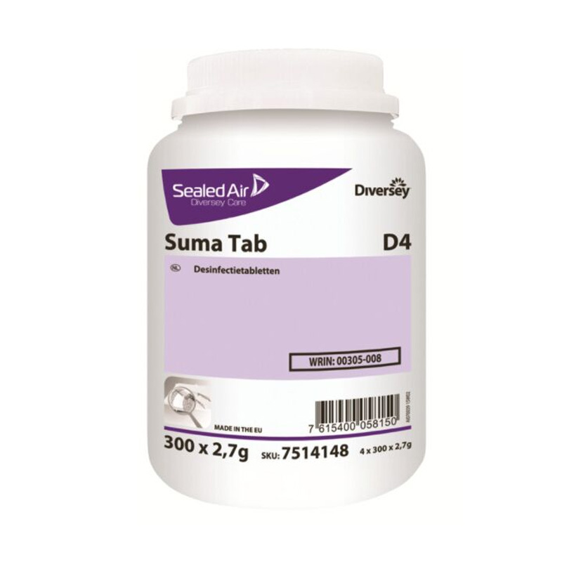 Suma Tab D4 is een chloortablet voor het desinfecteren van alle oppervlakken, inclusief voedselcontactplaatsen. In Nederland staat het product geregistreerd als desinfectiemiddel onder nummer 7321N. Gebruik biociden veilig. Lees voor gebruik eerst het etiket en de productinformatie.