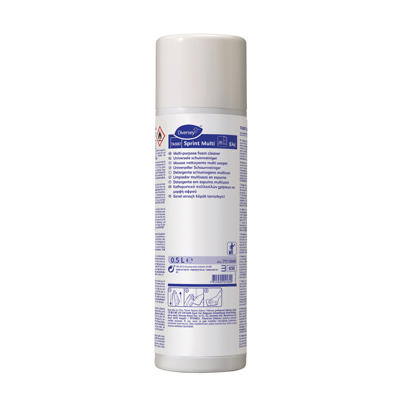Aerosol schuimreiniger geschikt voor alle waterbestendige harde oppervlakken. Ideaal voor verticale oppervlakken, het lichte schuim hecht zich aan het oppervlak voor langdurige actie. Verwijdert effectief vet, vingerafdrukken, koffievlekken, inkt en andere soorten vervuiling. Zorgt voor streepvrije reiniging van matte oppervlakken.