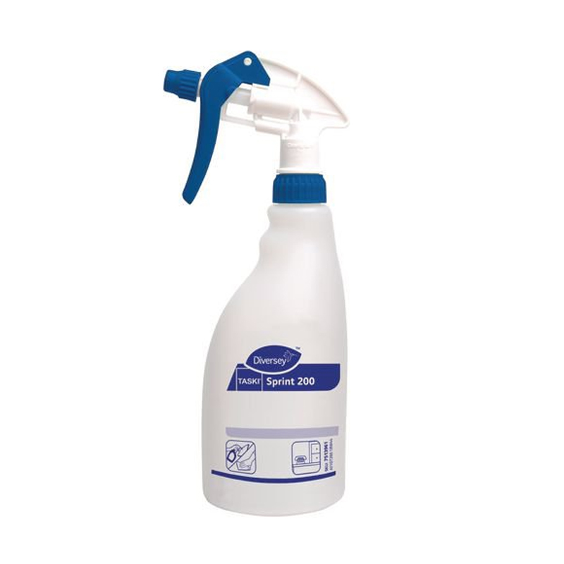- Deze fles is ontworpen voor de Sprint 200-schoonmaakvloeistof, de reinigende formule op alcoholbasis die harde oppervlakken snel en gemakkelijk schoonmaakt. Gebruik dit product voor handschoonmaak met doeken of moppen voor een streepvrije glans. De formule werkt effectief zonder dat er een restlaagje achterblijft. Door deze kleinere fles te gebruiken, kunt u op eenvoudige wijze kleinere doses van het geconcentreerde product gebruiken zonder dat de veiligheid in het geding komt.
