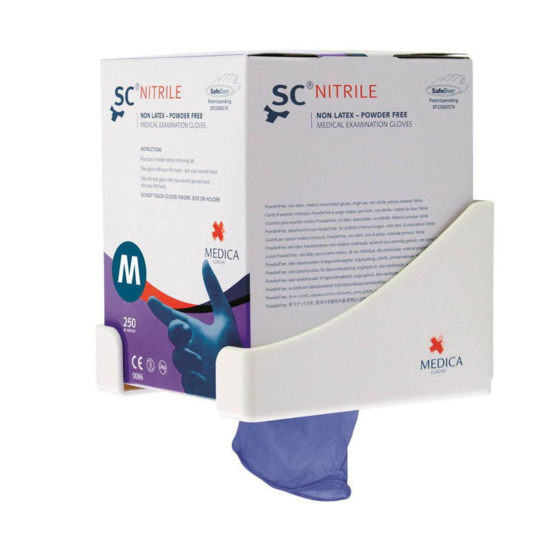 - De compacte wandhouder houdt de handschoenen ver weg van geïnfecteerde oppervlaktes.