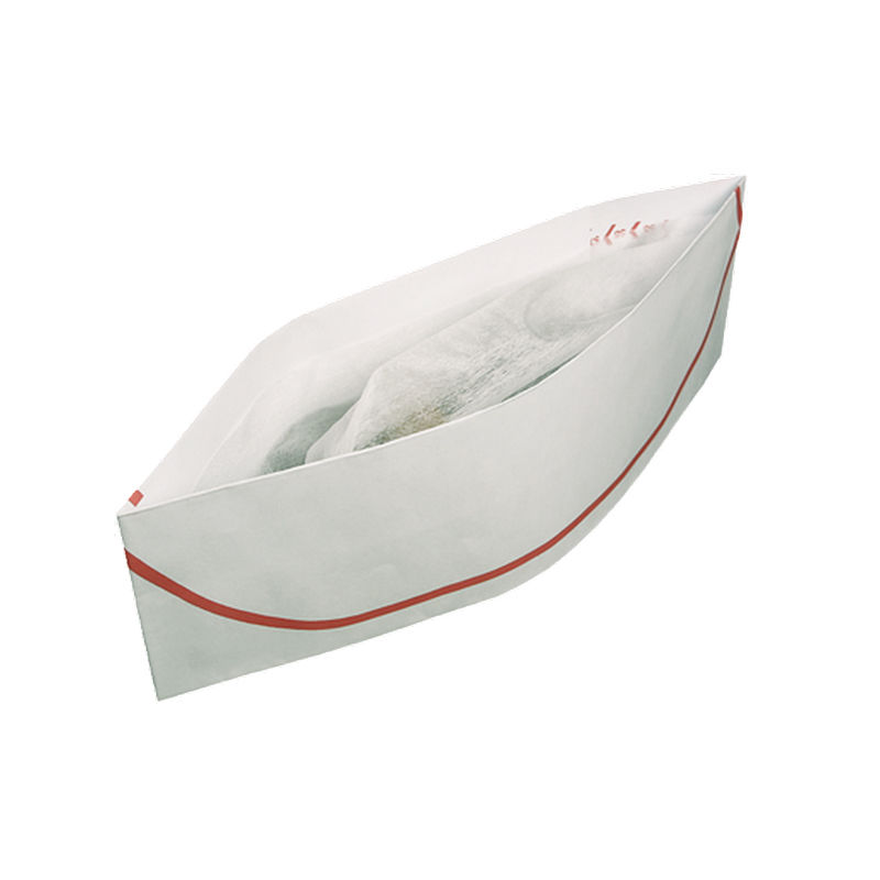 Deze witte slagersmuts of ‘fouragemuts’ voorkomt dat losse haren, huidschilfers of zweet in het voedsel terechtkomen. De zijkanten van de muts zijn van stevig papier en de hoofdbedekking is gemaakt van soepel en sterk non-woven. Dit luchtdoorlatende materiaal zorgt dat de huid gewoon kan ademen.