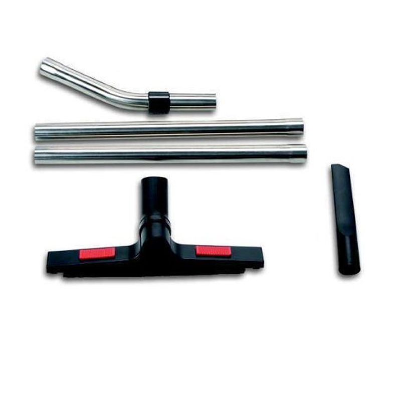 Systeem Ø 35 mm - 1 RVS handgreep met luchtregelaar - 2 RVS zuigbuizen (à 48 cm) - 1 vloer zuigmond 37 cm - 1 voegen zuigmond (21 cm)