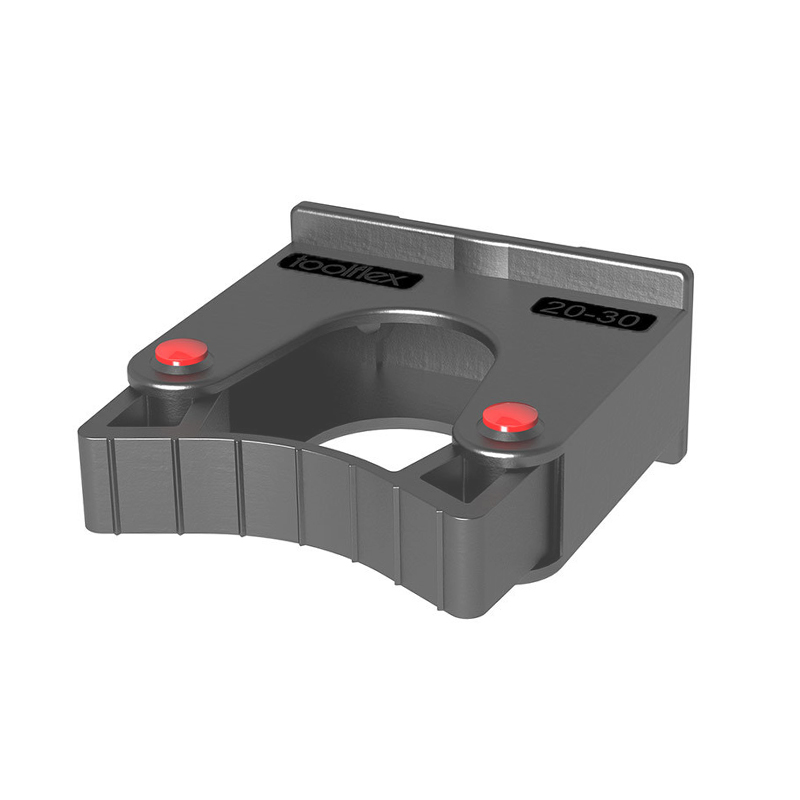 De Toolflex steelklem is een steelophanger van topkwaliteit en eenvoudig aan de bijhorende Toolflex wandstrip te schuiven.