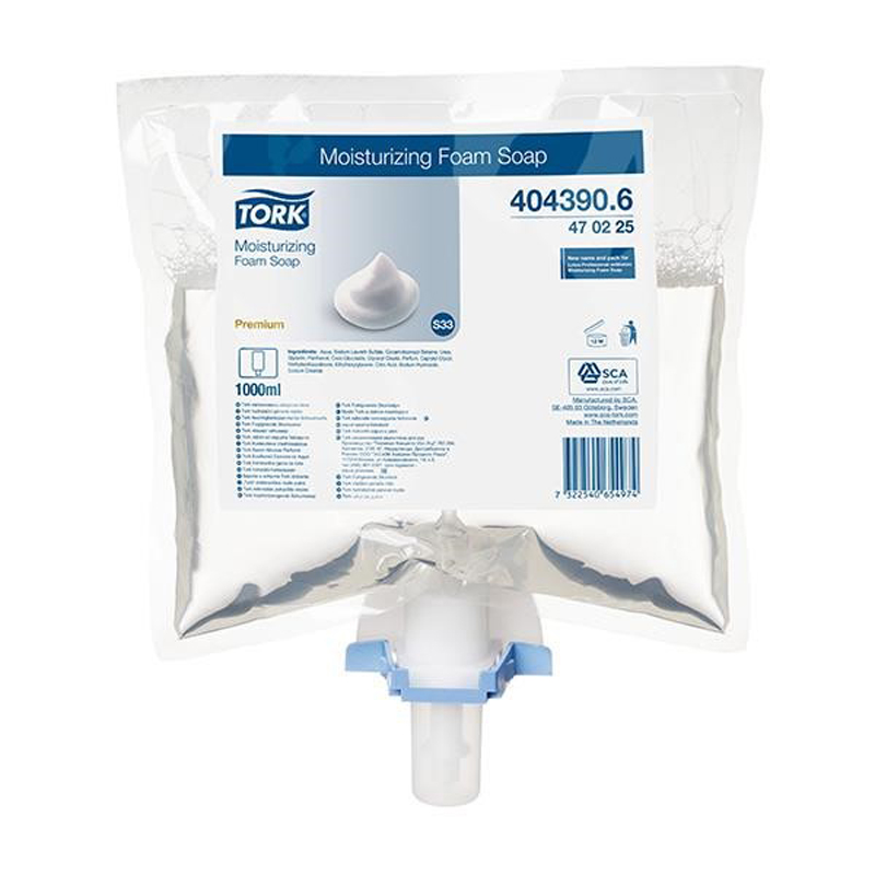 - Tork Moisturizing schuimzeep biedt snel een dosering schuim, waardoor men gemakkelijk de handen reinigt en afspoelt. Dit zorgt voor effectief en prettig handen wassen. De Tork Moisturizing schuimzeep is mild en werd dermatologisch getest. De huidverzorgende ingrediënten verzorgen de gevoelige huid bij veelvuldig handen wassen. Het is perfect voor sanitaire ruimten met veel bezoekers, vanwege de hoge capaciteit. Het is geparfumeerd en ontwikkeld om te zorgen voor zowel een efficiënte als een aangename handwassing.