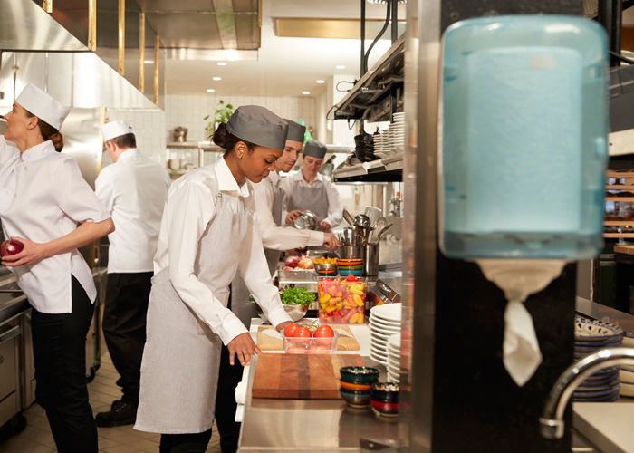 Als je papier wilt besparen is het Reflex systeem van Tork een uitstekende keuze. Door de nauwe opening en de perforatie rand in de rol scheurt het papier telkens netjes af.
