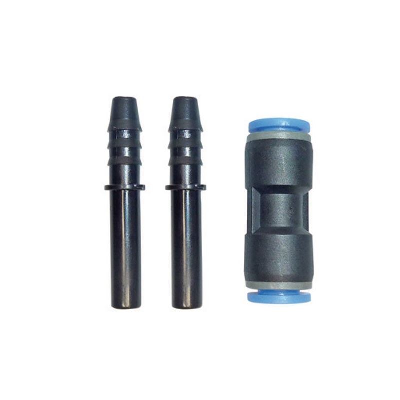 - De adapterstukken gewoon in de eindes van de slangen steken. Nu kunnen deze eenvoudig met elkaar verbonden worden.