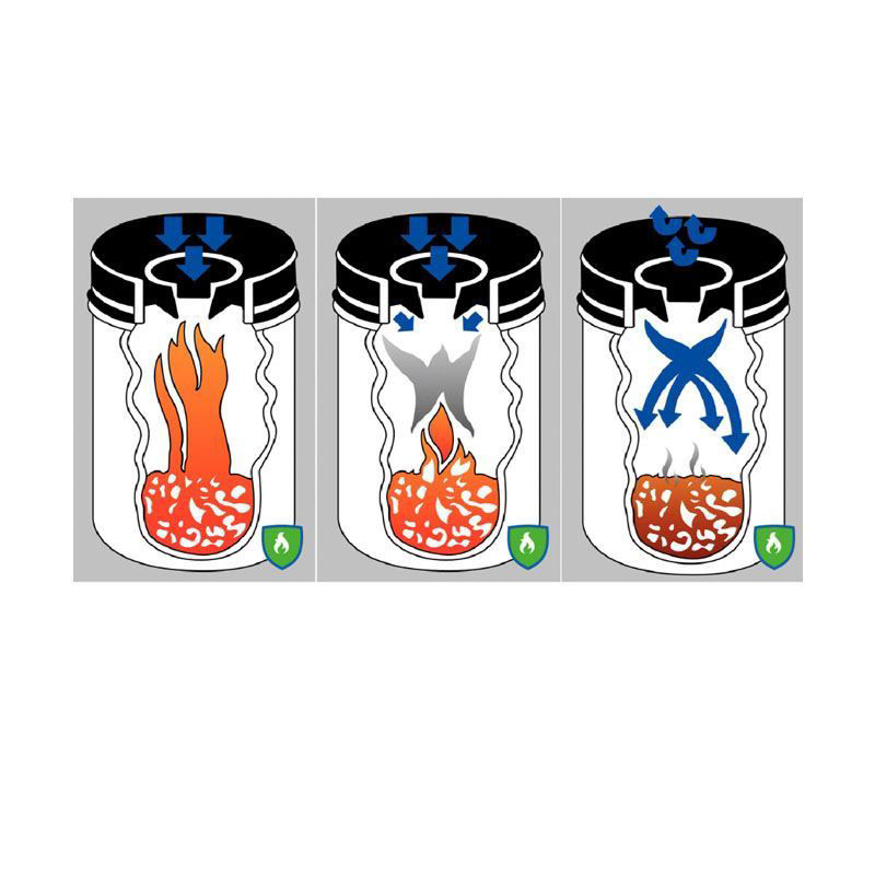 Vlamdovende afvalbakken zijn voorzien van een speciaal deksel waardoor rookgassen worden tegengehouden, en toetreding van verse zuurstof wordt belemmerd. Door deze constructie dooft de brand vanzelf, en wordt uitbreiding naar een grotere brand voorkomen.