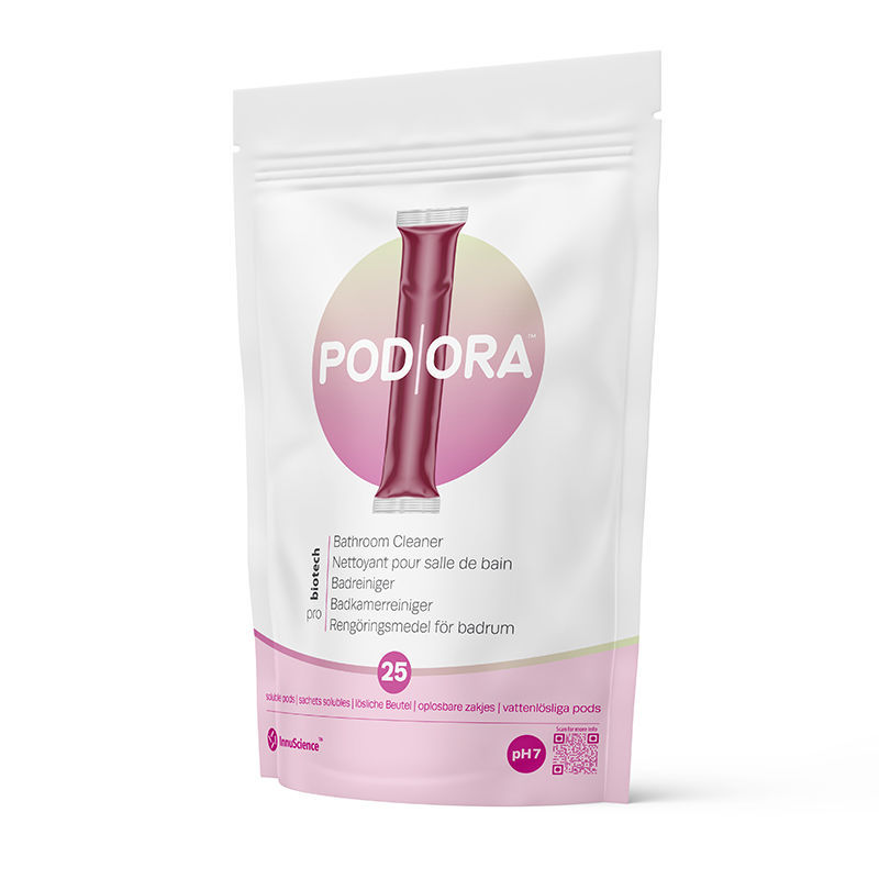 PodOra™ is een innovatief assortiment geconcentreerde biotechnologische reinigingsmiddelen in oplosbare pods die gemakkelijk te verdunnen en zeer effectieve reinigingsoplossingen bieden. Met een kleinere verpakkingsvoetafdruk en een supergeconcentreerde formule is PodOra™ de slimme keuze voor bedrijven die op zoek zijn naar veilige en duurzame schoonmaakoplossingen.