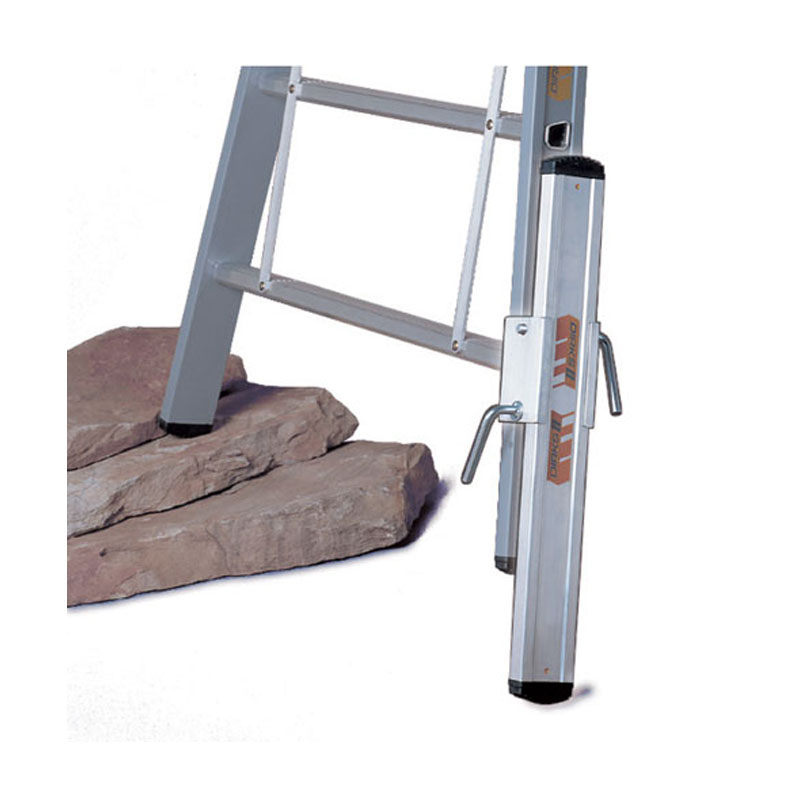 Plaatst de ladder in de juiste stand op een ongelijke ondergrond.