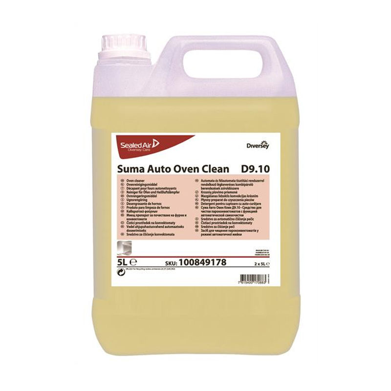 Suma Auto Oven Clean D9.10 is een geconcentreerde vloeibare reiniger voor ovens. Het bevat alkalische ingrediënten en een oppervlakteactief bestanddeel voor verwijdering van vetten en eiwitten.