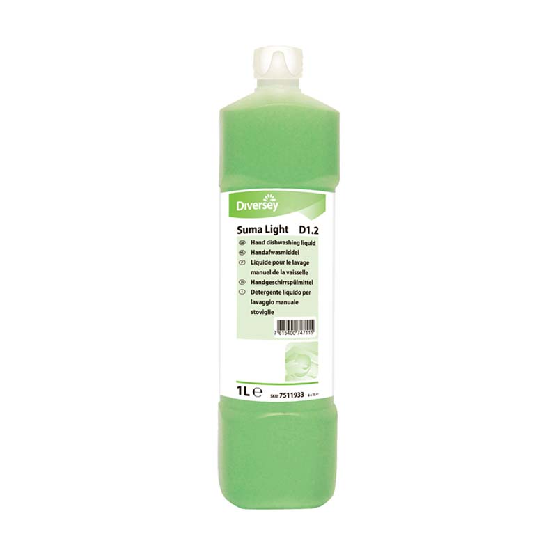 Suma Light D1.2 is een vloeibare allesreiniger voor manueel gebruik, bestemd voor het reinigen van potten, pannen, borden, glazen en alle afwasbare keukenmaterialen.
