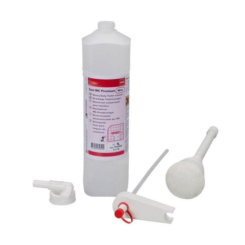 Inhoud: 4 borstels, 4x 1L. flacon, klemmen en doseerkraan.