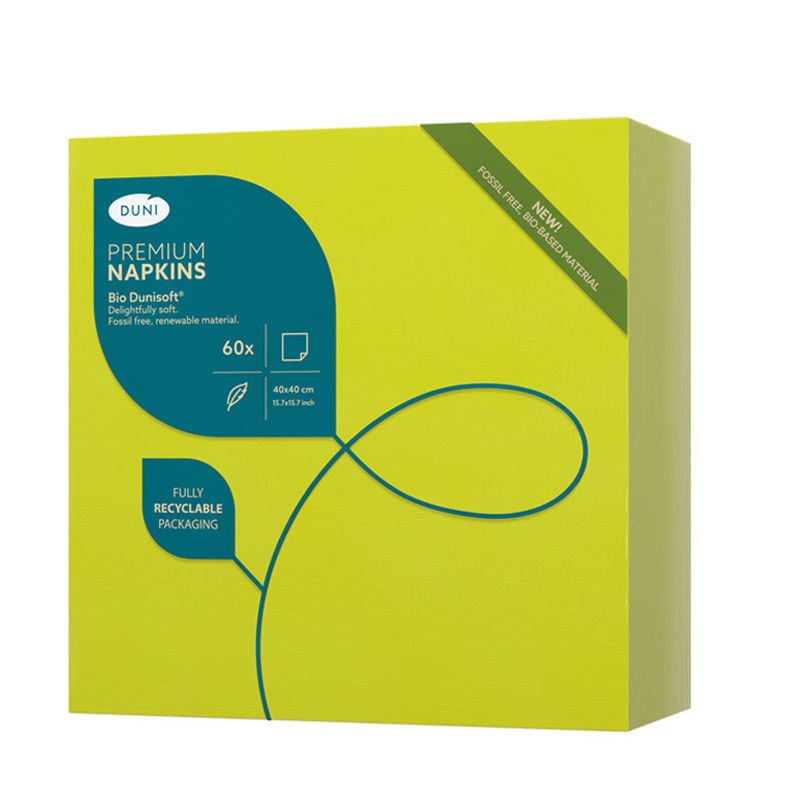 Royaal formaat en uiterst sfeervol. Optimaliseer de beleving van uw gasten, maar ook de hygiëne en het gebruiksgemak. Heerlijk zacht, voor kleurrijke momenten. Sterk absorptievermogen, gaat de hele maaltijd mee. Optimale balans tussen kosten en prestaties voor informele gelegenheden. Composteerbaar.
