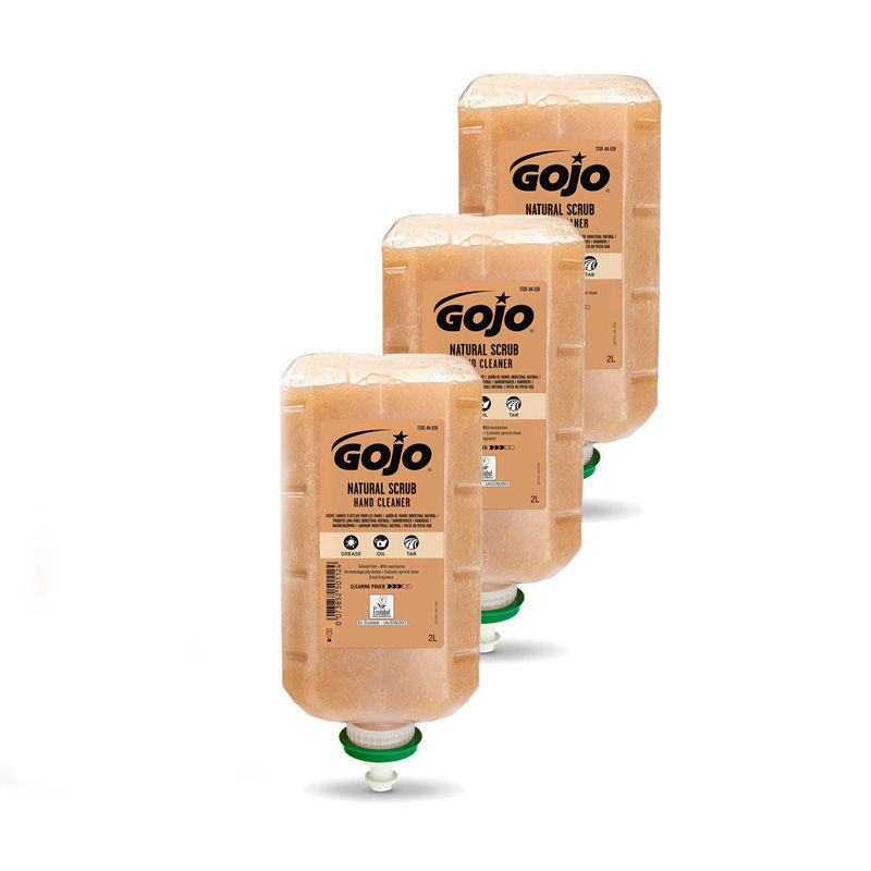 De Gojo natural scrub handcleaner is een krachtige handreiniger voor vuile handen. Efficient tegen vet, olie en teer. Vooral geschikt in werkplaatsen, garages en industrieen. Kan hardnekkige vlekken verwijderen dankzij de mechanische effecten van de plantaardige scrubbers, abrikozenpitten en maiszaad.