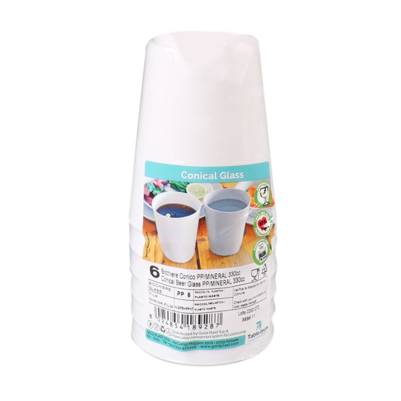 De ‘reusable’ servieslijn van Goldplast bestaat uit borden, schalen, bekers en glazen in diverse uitvoeringen en formaten. Alle producten zijn gemaakt van stevig glanzend kunststof en veelvuldig opnieuw te gebruiken. Met hun chique en toch eigentijdse design zijn ze een ideale keuze voor horecazaken, cateraars en bedrijven. En ook bij festivals, evenementen en andere feestelijke gelegenheden zorgt dit prachtige servies voor een verzorgde tafeldecoratie met volop allure. De herbruikbare bekers hebben een inhoud van 330 ml en worden per zes stuks geleverd.