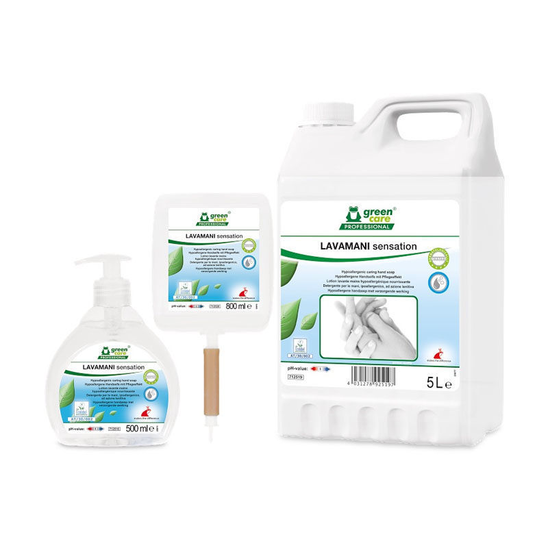 - LAVAMANI sensation is geschikt voor frequent gebruik. Het droogt de huid niet uit en respecteert de hydratatie van
