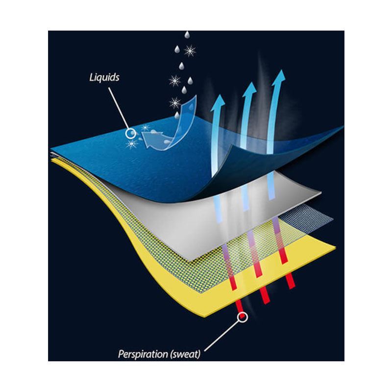 - Membraan houdt water uit de handschoen terwijl warme lucht en vocht van binnen naar buiten kan