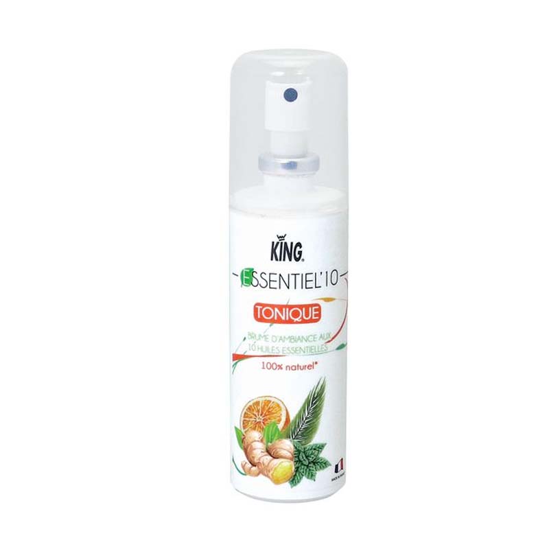 Essentiel'10 Tonique king, is een 100% natuurlijke mist om de atmosfeer te ontgeuren. Dit subtiele complex is samengesteld met 10 originele essentiële oliën, 100% natuurlijk, streng geselecteerd vanwege hun verkwikkende en stimulerende eigenschappen en het welzijn dat ze bieden. Deze kamermist helpt de atmosfeer te versterken en de zintuigen te stimuleren om vitaliteit en dynamiek te herwinnen.