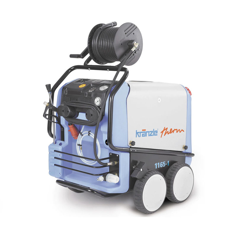 Professionele mobiele warmwater hogedrukreiniger. Levert tot 80°C vol vermogen, damptemperatuur max. 140°C. Uitgevoerd met haspel en 20 meter hogedrukslang en Starlet pistool met RVS lans. Slagvaste en zware behuizing, sterke wielen en stalen stootrand. Met diesel verwarmd, hoog rendement door extra lang spiraal. Duurzame machine met 1.400 toeren pomp. Geschikt voor langdurig en industrieël gebruik.