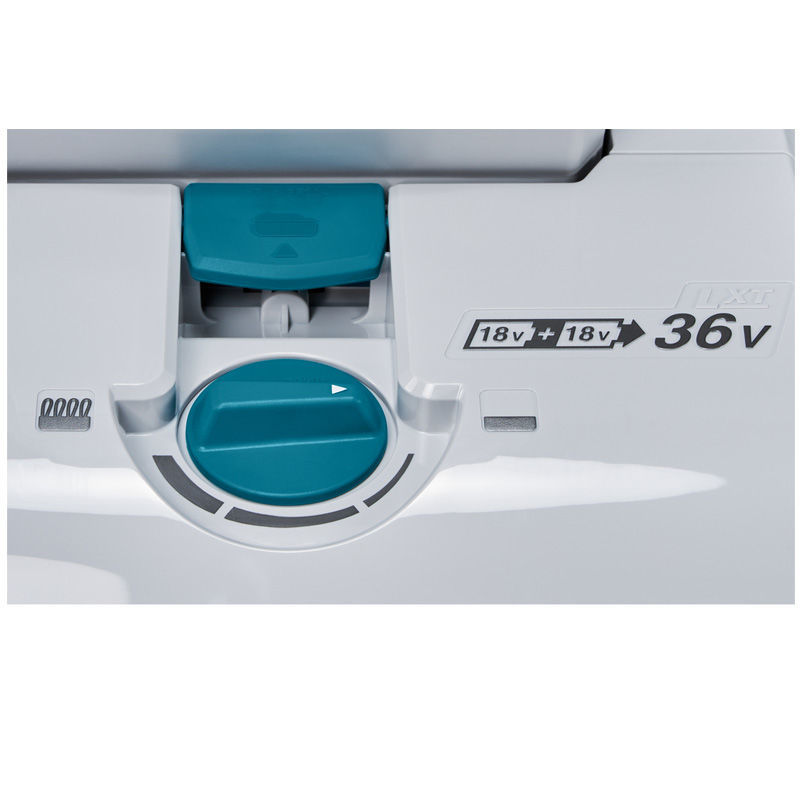 - Regelbare zuigkracht: maximaal, hoog en laag. Werktijd maximaal: 30 minuten, hoog: 60 minuten, laag: 120 minuten (met twee 6,0 Ah accu's (BL1860B)).