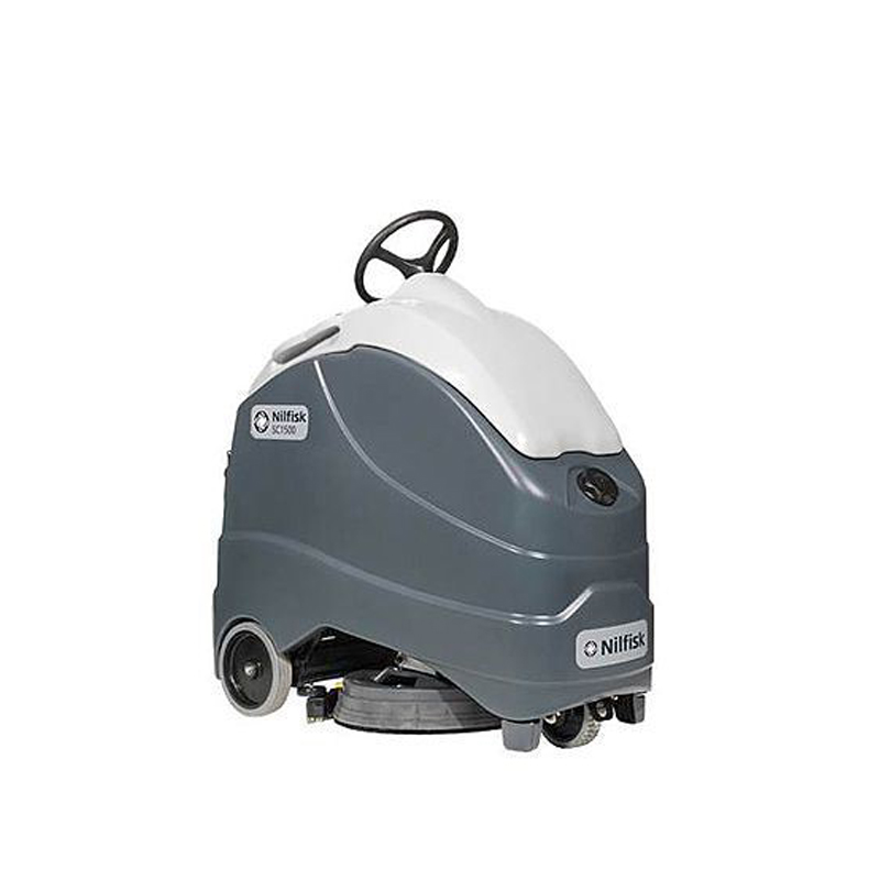 De Nilfisk SC1500 is een innovatieve stand-on schrobzuigmachine die voorziet in een hoge efficiency dankzij een ongekend gebruikersgemak, dankzij verhoogde prestaties, de hoge kwaliteit en betrouwbaarheid. Het is een investering in Nilfisk kwaliteit die zich jaar na jaar terugverdiend. De Nilfisk SC1500 schrobzuigmachine brengt gebruiksgemak naar een hoger niveau. Stap gewoon op en klaar om te reinigen. Het intuïtieve bedieningspaneel maakt bediening voor de gebruiker zeer eenvoudig zelfs bij gebruik voor de eerste keer. De kleine afmetingen en het handige besturingssysteem maken manoeuvreren eenvoudiger dan ooit. Dankzij de eenvoudige bediening, de grote capaciteit en de stille werking van de Nilfisk SC1500 schrobzuigmachine is dit de juiste keus voor de gezondheidszorg, scholen, kantoren, supermarkten en sporthallen.