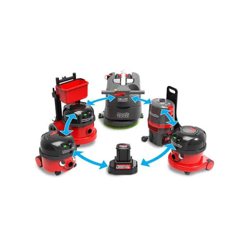 Een Numatic NX300, 36 volt lithium batterij is bovendien te gebruiken in alle snoerloze machines van Numatic. De accu is geschikt voor de snoerloze stofzuigers, rugstofzuigers en schrobzuigmachines