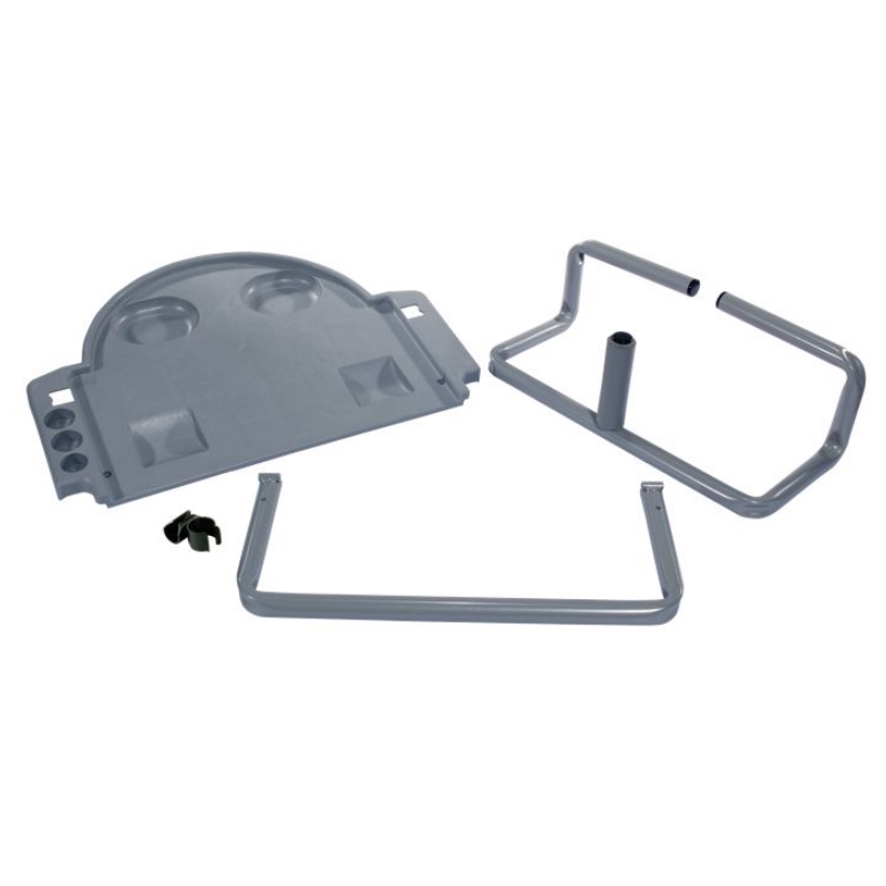 Een uitbreidingskit die bestaat uit een plateau om een Numatic stofzuiger op te plaatsen en handige opberg mogelijkheden om accessoires van de stofzuiger goed mee te brengen. Met deze stofzuiger kit breng je altijd de stofzuiger mee. De stofzuiger rolt niet van het plateau door de al aanwezige wielvormen.