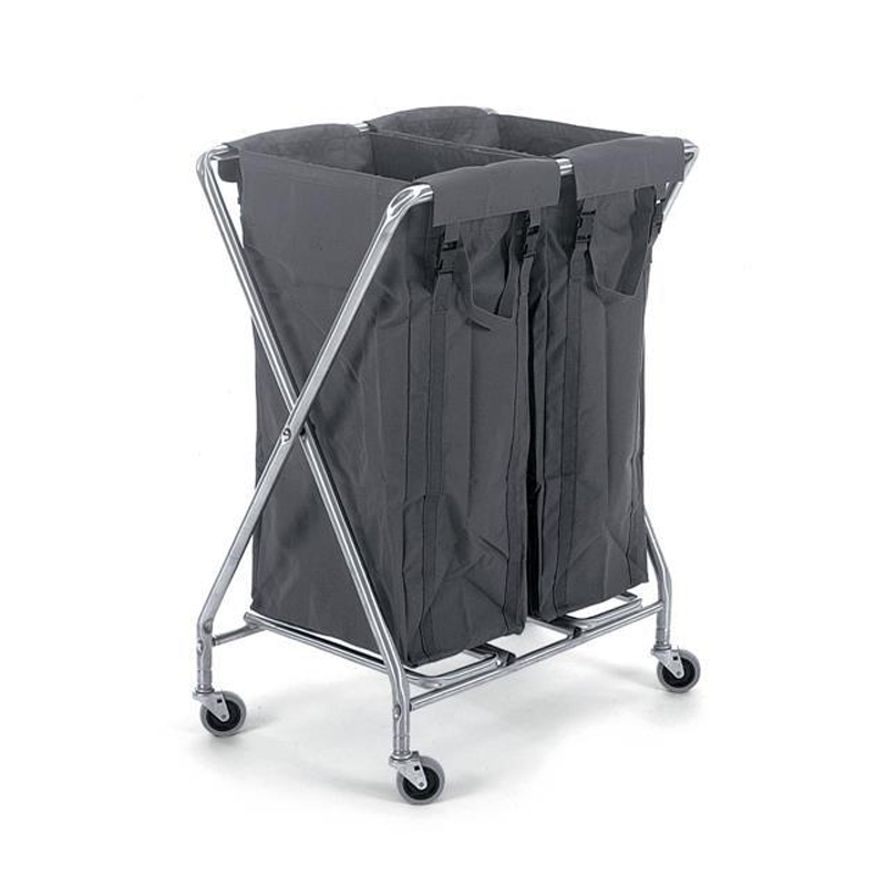 Praktisch en opvouwbare waszakwagen met het stalen Nutex buizenframe met vier 75 mm zwenkwielen en een makkelijk af te halen twee keer 100 liter waszak.