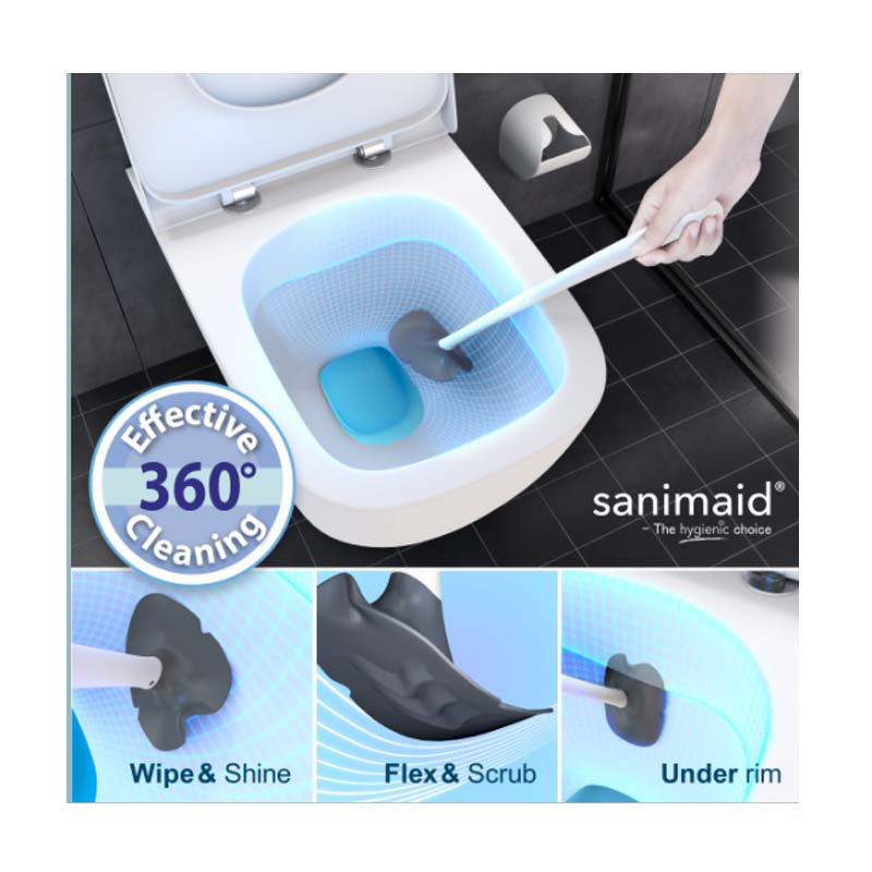 De Sanimaid Oslo beschikt over de ingebouwde antibacteriële technologie van Microban en verwijdert tot 99% alle bacteriën die op de borstel terecht komen. Het waterafstotend materiaal van de toiletborstel zorgt er voor dat er geen vuil toiletwater op de grond of in de houder terecht komt. De borstel beschikt niet over haren zodat bij gebruik de borstel geen resterende ontlastingsresten in het toilet achter laat.