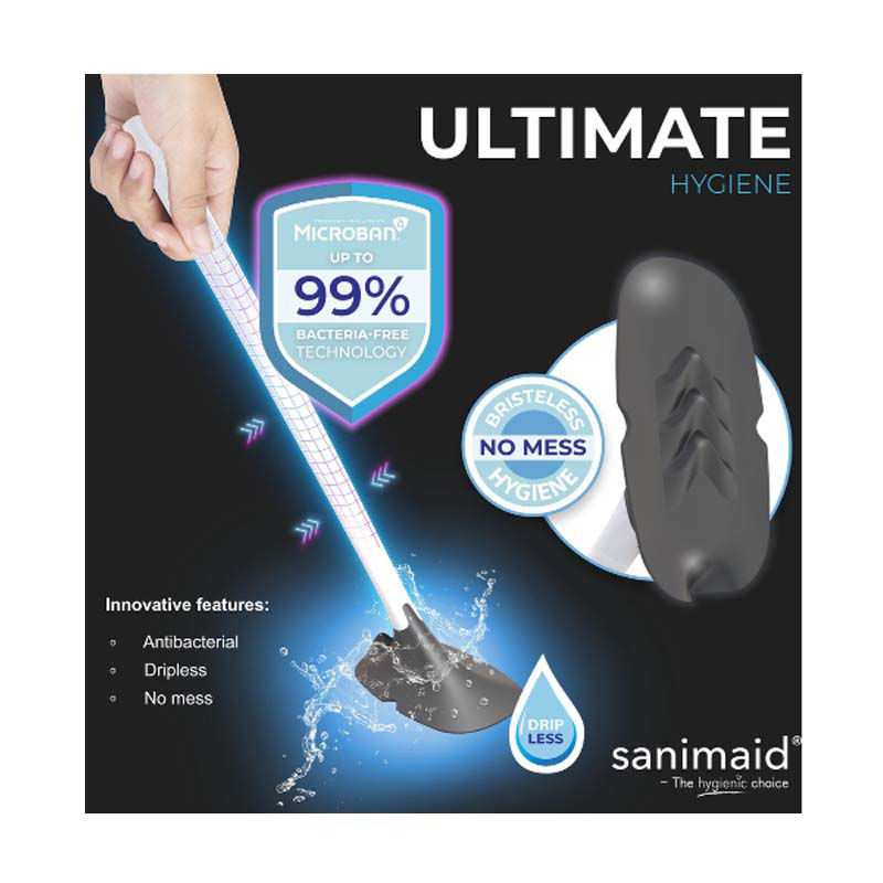 De Sanimaid Oslo beschikt over de ingebouwde antibacteriële technologie van Microban en verwijdert tot 99% alle bacteriën die op de borstel terecht komen. Het waterafstotend materiaal van de toiletborstel zorgt er voor dat er geen vuil toiletwater op de grond of in de houder terecht komt. De borstel beschikt niet over haren zodat bij gebruik de borstel geen resterende ontlastingsresten in het toilet achter laat.