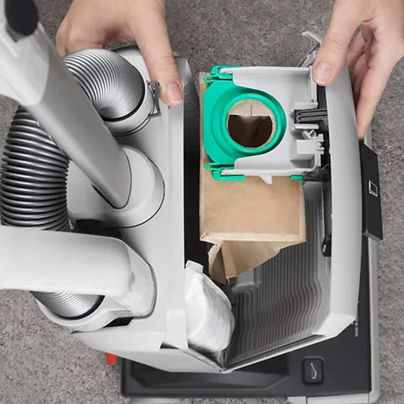 De slang met geïntegreerde zuigstang is direct klaar voor moeilijk bereikbare plaatsen. Geïntegreerde accessoires zijn handig opgeslagen op de machine en kunnen worden aangesloten aan de telescopische slang en zuigstang. De SEBO XP stofzuiger wordt geleverd incl. het 3-stappen filtersysteem dat resulteert in 99,9% effectiviteit tot 0,3 micron, waardoor het de perfecte keuze is voor klanten met allergieën en astma.