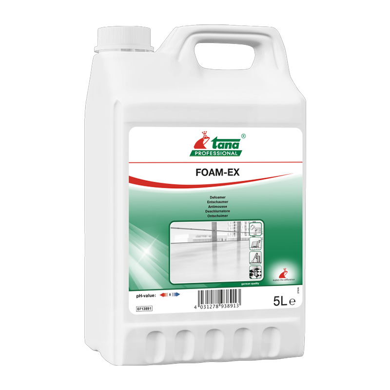 FOAM-EX verhindert schuimvorming in vuilwaterreservoirs van sproei-extractiemachines, waterzuigers, schrobzuigautomaten en breekt het schuim af dat samengesteld is uit resten van oppervlakte-actieve bestanddelen en zeep. Onderbrekingen worden verminderd.
