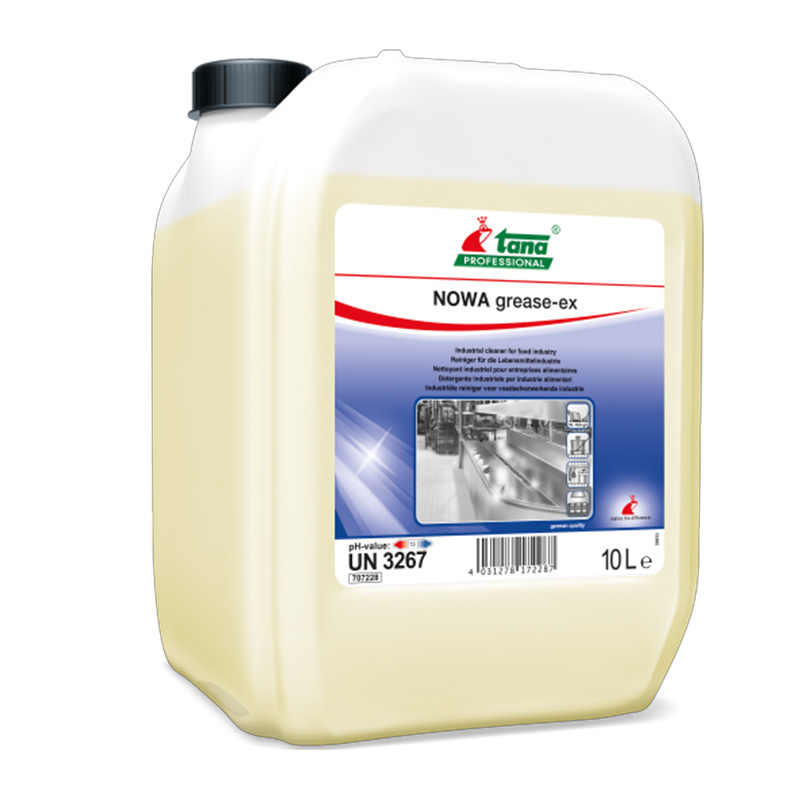 NOWA grease-ex is een krachtige ontvetter, die oliën en vet van mineralel, plantaardige en dierlijke oorsprong effectief oplost.