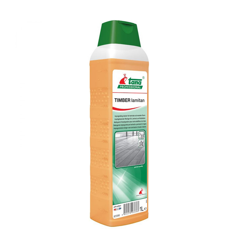 TIMBER lamitan is een impregnerend reinigingsmiddel voor vloeren van hout, laminaat en parket. De effectieve formule laat een onzichtbaar laagje op de vloer achter voor extra bescherming. TIMBER lamitan beschermt eveneens de voegen, waardoor de vloer minder gevoelig wordt voor vocht.
