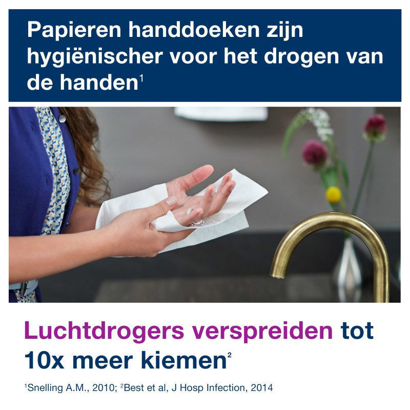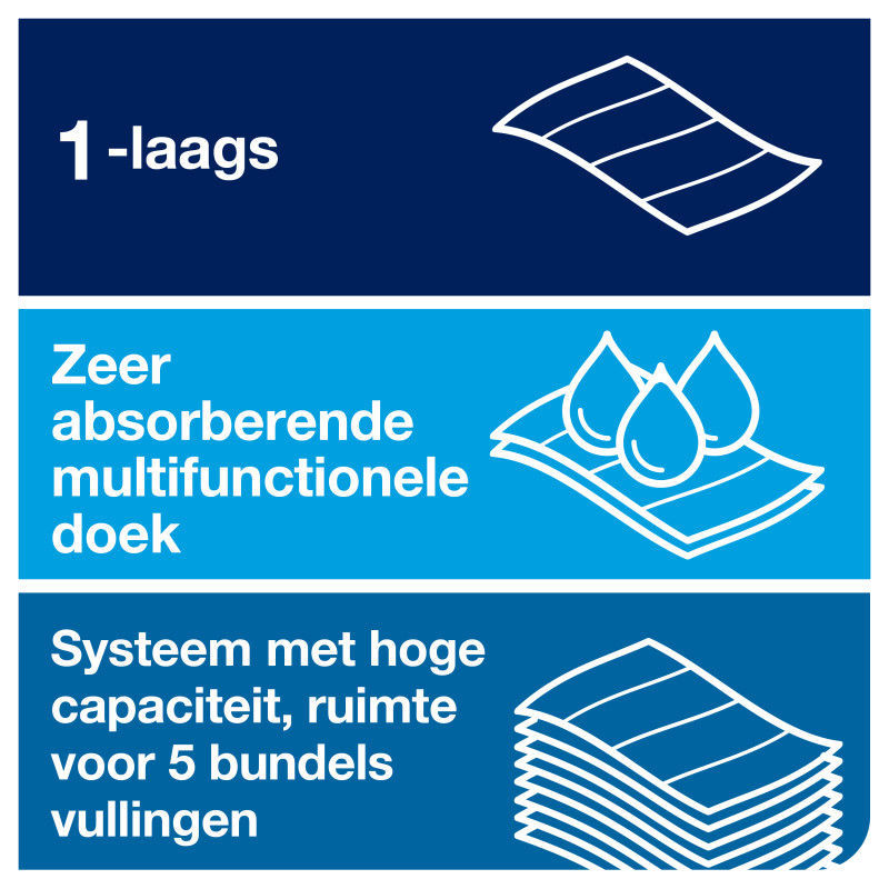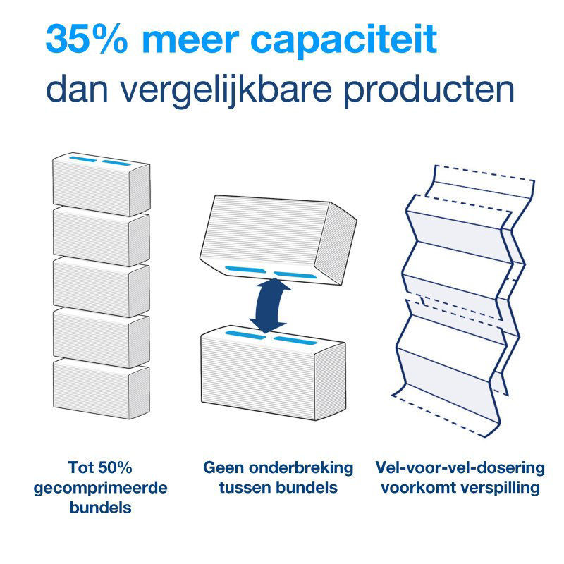 - Doorlopende handdoeken worden soepel uitgegeven, zelfs tussen bundels in, voor een betere doorstroom in de sanitaire ruimte zonder oponthoud