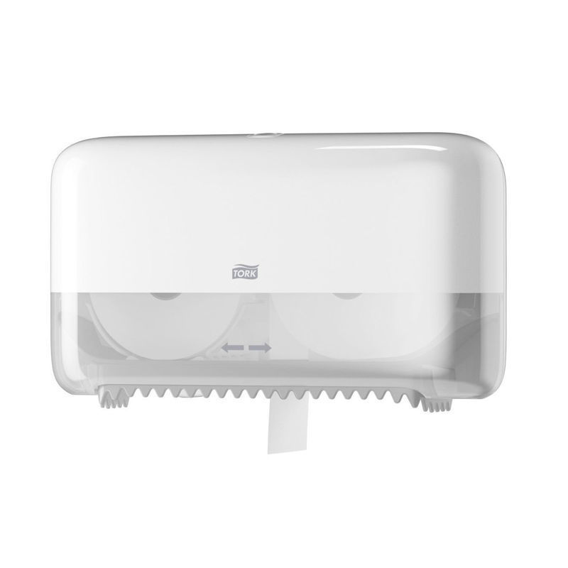 De Tork Twin Hulsloos Mid-size Toiletpapier Dispenser is ideaal voor sanitaire ruimtes met een klein tot gemiddeld bezoekersaantal, waar de tevredenheid van de gast voorop staat. De twee mid-size rollen bieden hoge efficiëntie en zorgen ervoor dat er altijd papier beschikbaar is voor de gasten. Tork Hulsloos Mid-size Toiletpapier Advanced levert een goede balans tussen kosten en prestaties. Tissue gemaakt van 100% gerecyclede vezels.