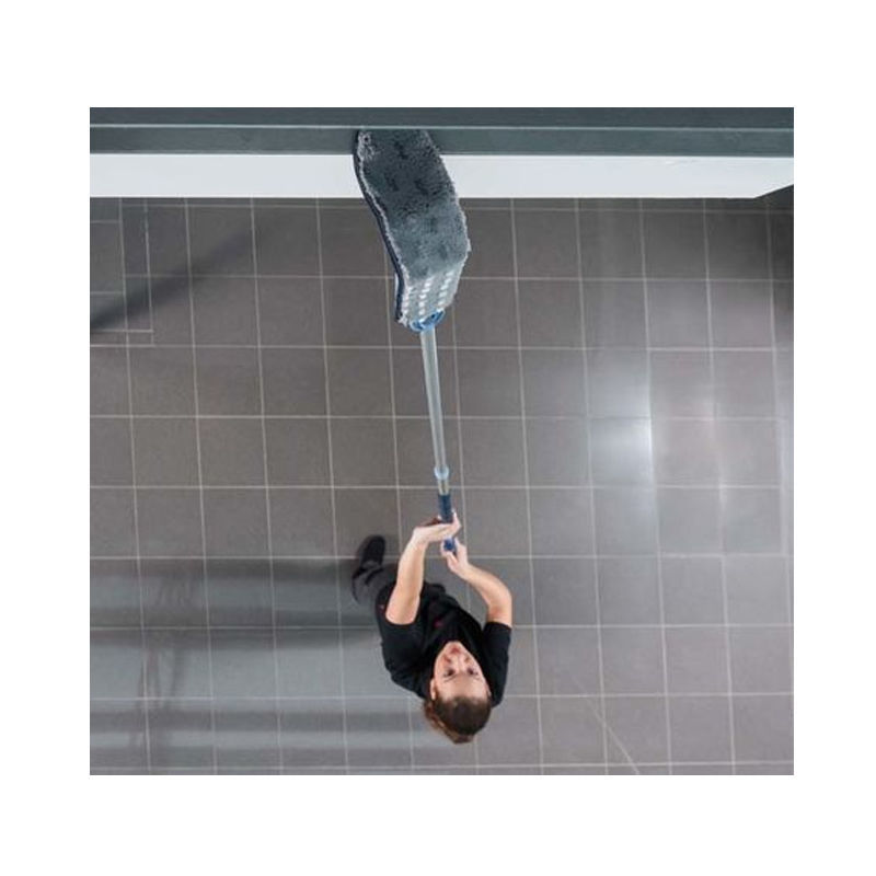 De MultiDuster wordt gebruikt voor het verwijderen van vuil op hooggelegen en moeilijk te bereiken oppervlakken. Enkele voorbeelden zijn de bovenkanten van kasten, leidingen en deuren. Daarnaast is hij geschikt voor het reinigen tussen radiatoren en het afnemen van plinten zonder te bukken. In combinatie met een telescoopsteel kan er tot maximum 5 meter hoog gereinigd worden. De telescoopsteel is eenvoudig aan te brengen door het handvat van de MultiDuster te verwijderen. De kortere Vileda Professional telescoopsteel past ook op de MultiDuster. Deze steel voldoet voor het reinigen tot 2,5 meter hoog. De MultiDuster wordt gebruikt in combinatie met een uitwasbare MicroPlus microvezelhoes.