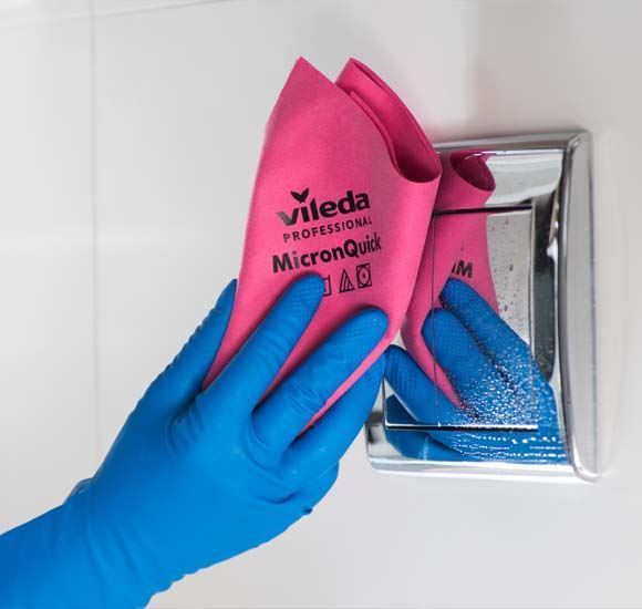 De MicronQuick reinigingsdoek is de meest ideale doek voor sprayreiniging of pre-prepared reiniging van sanitair en interieur. De doek is in 4 kleuren leverbaar en reinigt in de meeste gevallen uitstekend klamvochtig zonder reinigingsproduct. Zowel handmatig als machinaal te bevochtigen. Bestand tegen reinigingsproducten voor dagelijkse toepassing. Niet gebruiken in combinatie met sterk alkalische reinigers of chloorhoudende producten