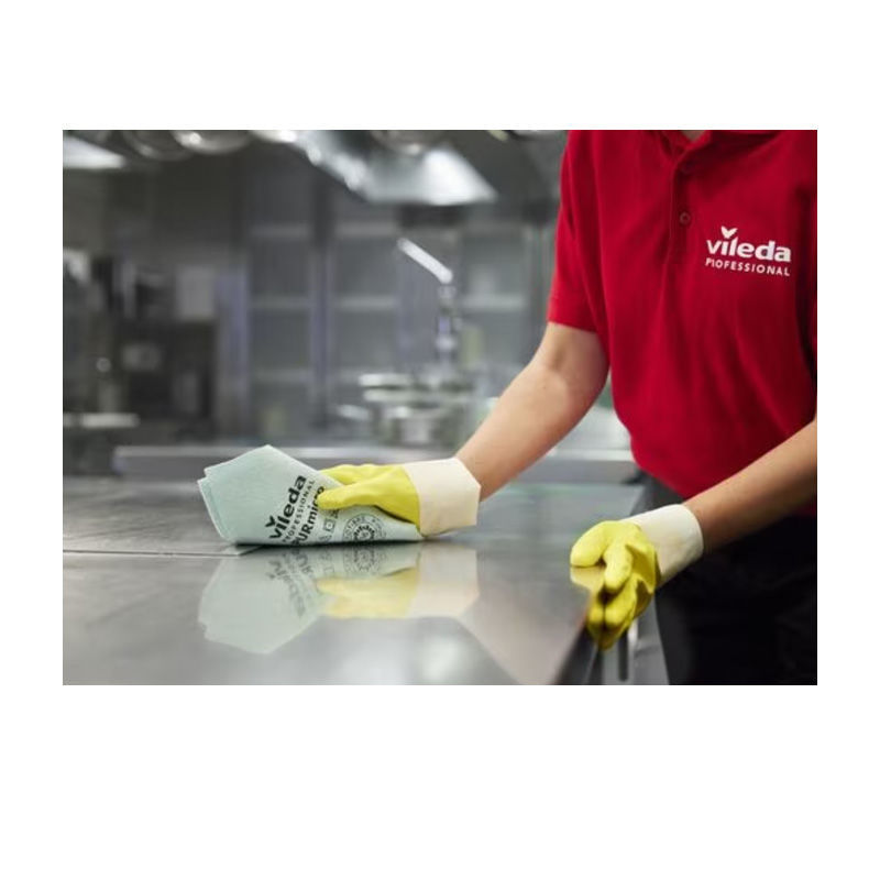 PURmicro Active is de nieuwe microvezeldoek gebreid met een fijn laagje polyurethaan van Vileda Professional.