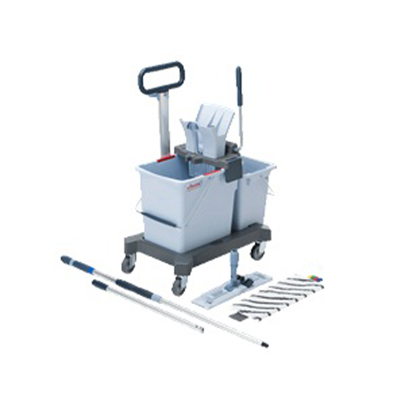 De UltraSpeed Pro Double Bucket systeem is een compact en efficiënt mopsysteem geschikt voor het onderhoud van middelgrote tot grote oppervlakken. UltraSpeed Pro biedt een uitgebreid assortiment van microvezelmoppen. Een voorbeeld hiervan is de Safe mop, een speciale schrobmop voor het onderhoud van anti-slipvloeren.