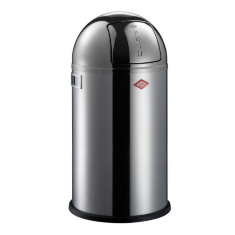 Afvalbak met pushdeksel en vuurbestendige metalen binnenemmer.