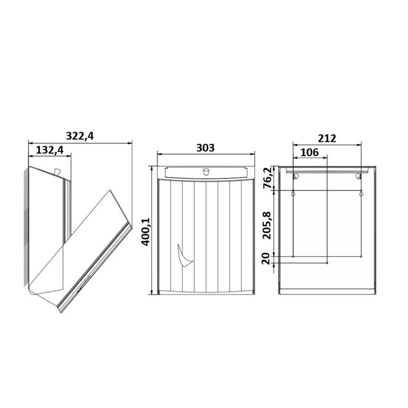 | Afmeting | H 403 x B 300 x D 139 mm |